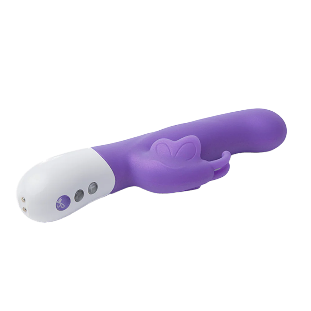 Introducing the new Butterfly Collection from The Rabbit Company! The Vibrating Dual Stim Butterfly features a curved tip that targets the g-spot, while the powerful fluttering feelers provide direct clitoral stimulation and an external massage. The Butterfly's textured surface enhances sensation as it massages the clit. Two independently controlled motors, eight modes and six intensities allow for a truly personalized experience. The Vibrating Dual Stim Butterfly is also USB rechargeable and features an easy-to-use, three-button design.